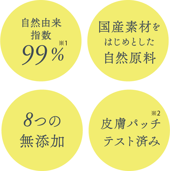 ※1:ヌッカ+ スキンケアシリーズのローション、セラムのこと〈ローション:自然由来指数99.17%(水を含む)セラム:自然由来指数98.88%(水を含む)/クレンジング:自然由来指数84.18%(水を含む) 〉