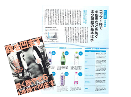 「この夏こそ!腹を凹ます!」の水分補給テク完全ガイド 定番の水(アルカリイオン水)として温泉水99が紹介されました。