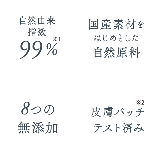 ※1:ヌッカ+ スキンケアシリーズのローション、セラムのこと〈ローション:自然由来指数99.17%(水を含む)セラム:自然由来指数98.88%(水を含む)/クレンジング:自然由来指数84.18%(水を含む) 〉