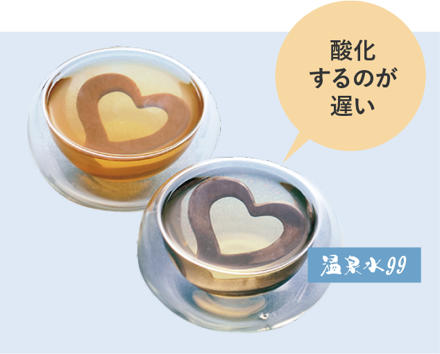 若々しく健康でいるために大切なのは、体内バランスの維持。 温泉水99は酸化するスピードが遅く、鉄を入れてもほとんどサビが出ずに美しさを保っています。